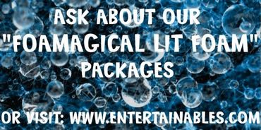 "FOAMagical-LIT FOAM" NIGHT PARTY FOR UP TO 30 PEOPLE. INCLUDES UV AND COLORED LIGHTING TO LIGHT UP THE FOAM, 25 GLOW STICKS, 7 MULTI-COLORED UV BODY PAINT STICKS TO LIGHT UP "YOU," FUN MUSIC TO DANCE TO, AND A FOAM CANNON OPERATOR.