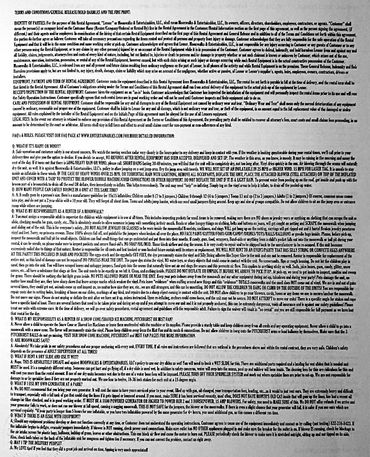 Below are samples of forms that will be signed at the time of delivery. If you'd like to save a little time, you are welcome to print out and initial the page below that says, "PLEASE READ AND INITIAL ALL," to hand to us at signing. We will go over all rules to ensure a safe party, and you will receive copies of the forms at setup. Please visit our FAQ PAGE for commonly asked questions.
