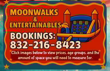 Add $25.00 per Moonwalk, Pitchburst or Foam Party.